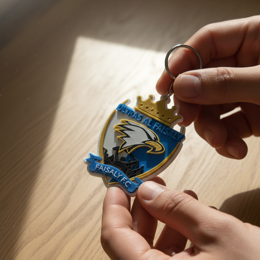 ميدالية مفاتيح بشعار التراس الفيصلي المجيدة مطبوعة بتقنية ثلاثية الأبعاد